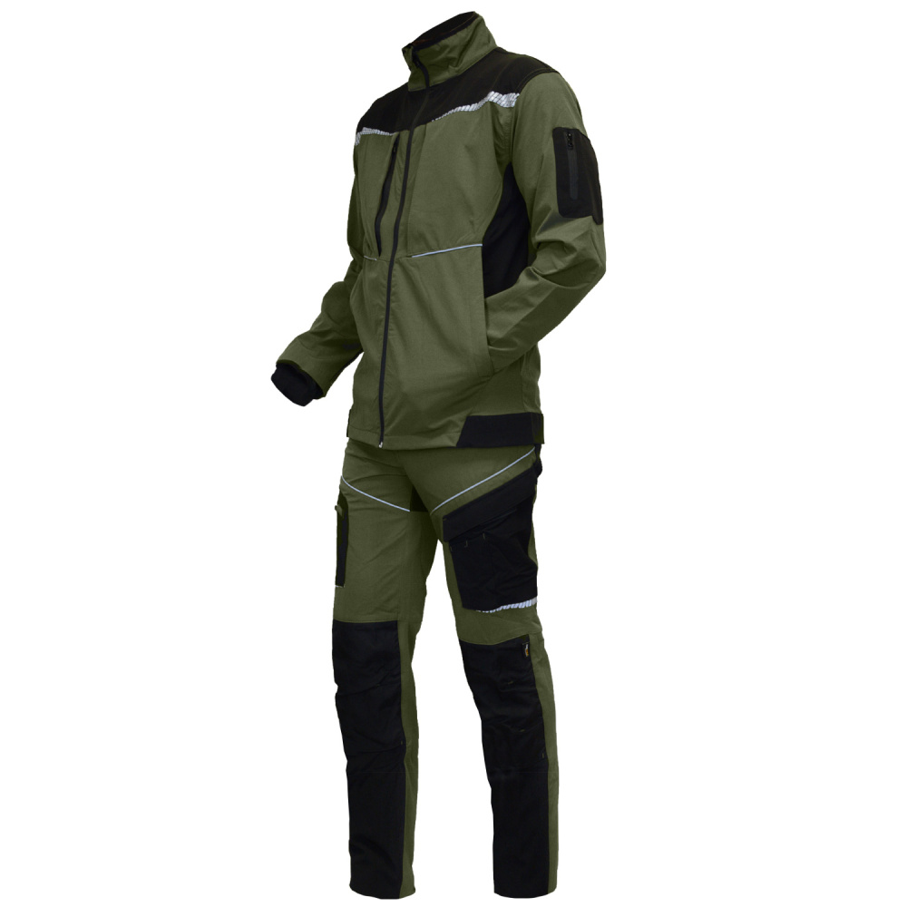 Mūsdienīga darba jaka Ultra Stretch haki krāsā, izgatavota no augsti elastīga 4 virzienu stiepuma auduma, nodrošina vieglu un ērtu valkājumu. Audums stiepjas un pielāgojas ķermeņa formai, piemērots darbam vai pietupieniem, saglabājot kustību brīvību un komfortu.