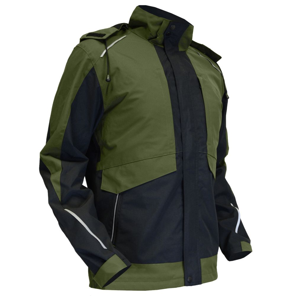 Haki krāsas jaka, kas iztur gan lietu, gan vēju, nodrošina komfortu un aizsardzību dažādos laikapstākļos. Acs odere ļauj gaisam cirkulēt, nodrošinot elpojamību.