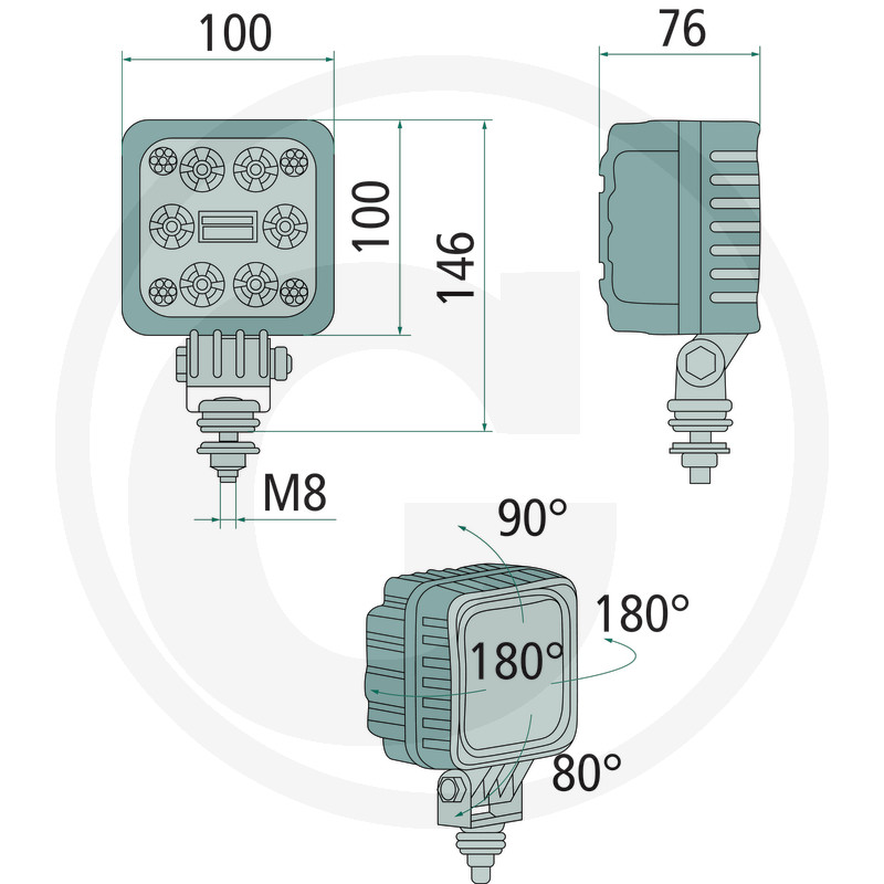 Stiprinājuma veids: Vertikāls/piekarināms/sānu, M8