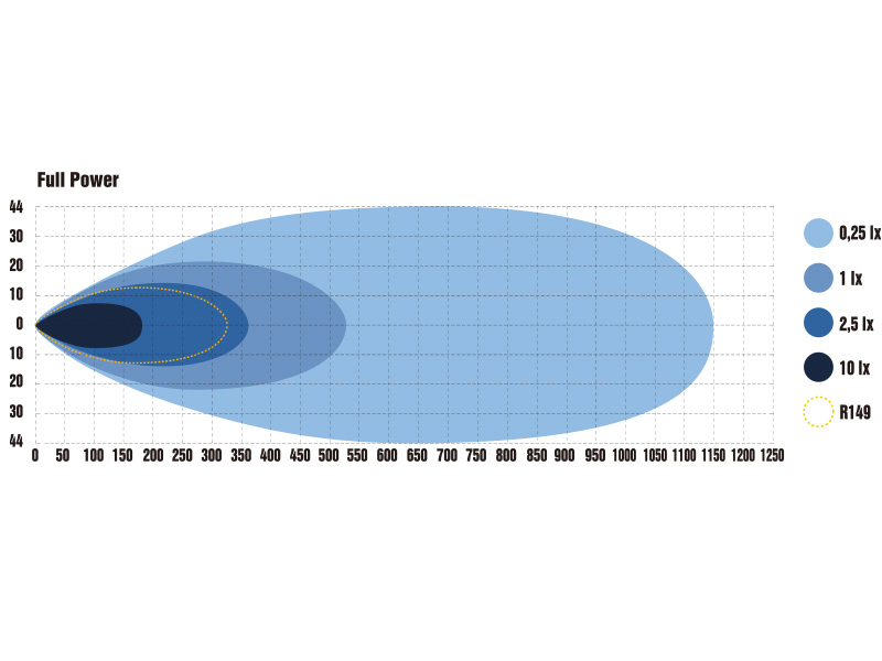 • Gaismas jauda: 5400 lm (kopējā), 1690 lm (R149 režīmā), 5070 lm (dzeltenajā režīmā)